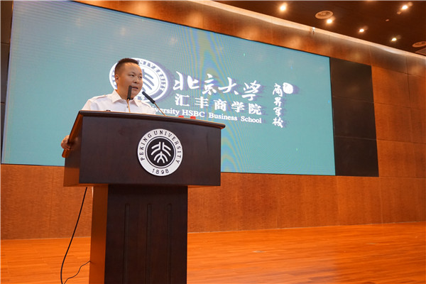 动员大会由海闻院长致开营辞。海院长从汇丰商学院的目标、汇丰学子独有的特色以及汇丰人的历史使命三个角度表达了汇丰商学院一直以来的发展愿景以及对2015级新生的期待。早在2001年,应国家改革开放的必然要求,北京大学与深圳市政府合作创办的北京大学深圳研究生院被批准成立。在这样的背景下,北京大学深圳研究生院于2004年正式落成,而旗下的商学院是首创院系之一。经过十余年的发展,汇丰商学院已经成为全中国最好的商学院之一,同时也是在世界上享有名望的商学院。如今,汇丰商学院已经在中国金融及管理的高端人才教育领域脱颖而出,正在向国际一流商学院的目标迈进。