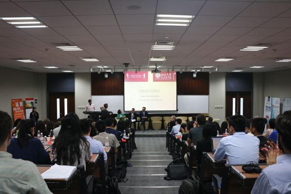 黄海峰教授作为论坛负责人,与前海管理局的聂海峰、汇丰商学院的张凡珊、毛娜、吴爽、王辉、环能学院的王传胜等组委会成员,一道成功组织了15家国内外企业与北大百位学生面对面的交流。