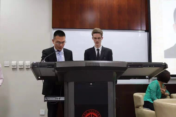 问答结束后,“中国研究”课程的班级代表David Ko向观众展示了他们的学习成果并代表全班同学向黄海峰教授以及所有对课程做出贡献的人表达了感谢。