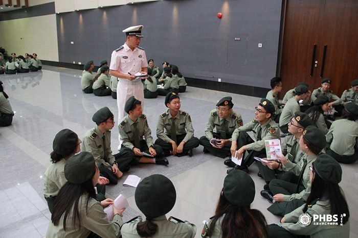 随后,北京大学汇丰商学院领导力素质提升中心副主任仲老师致辞,就即将展开的七天训练进行简单的说明,并介绍接下来一年将与同学们朝夕相处的各位教官。没有规矩,不成方圆,素质提升中心李明老师强调训练过程中注意事项,要求令行禁止,并对评分体系等展开详细介绍;谆谆教导,细心叮咛,余教官和覃教官为同学们展示着装要点与携行装具的标准,对细节性问题进行解答。