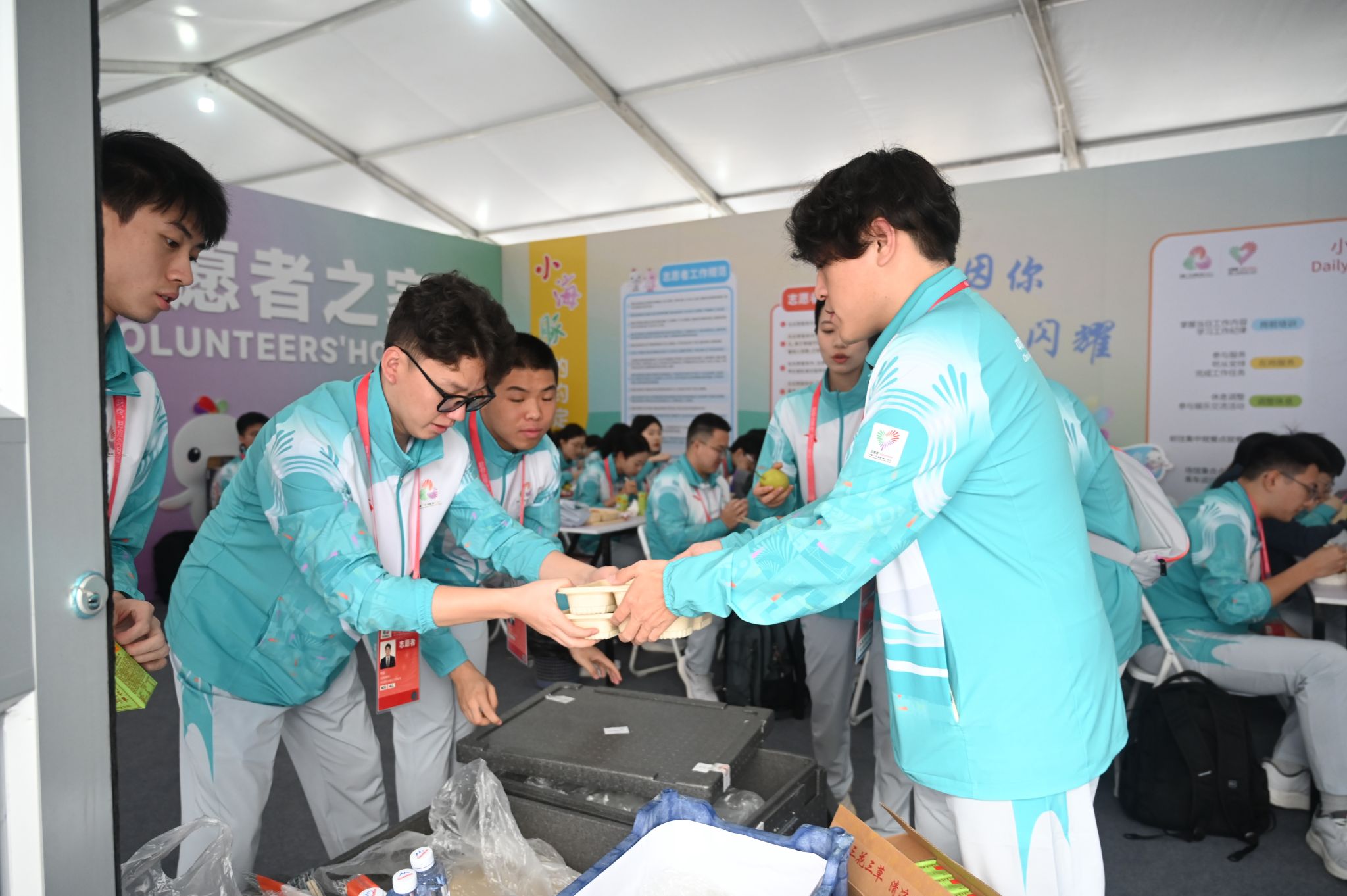 我服务于志愿者管理处,岗位职责包括保障志愿者们的日常用餐与能量补给,组织丰富多样的趣味活动充实志愿者们的休息时间,帮助志愿者们协调解决在服务期间遇到的问题和困难等。能够把自己人生某一阶段有机融入国家的大型体育赛事是一件很幸运的事,同时非常感谢学院的支持和保障,积极沟通协调课程和考试安排,让我们可以无后顾之忧做好赛事服务保障。希望之后可以在更多的志愿服务活动中共同为地区的发展和社会的进步贡献力量。