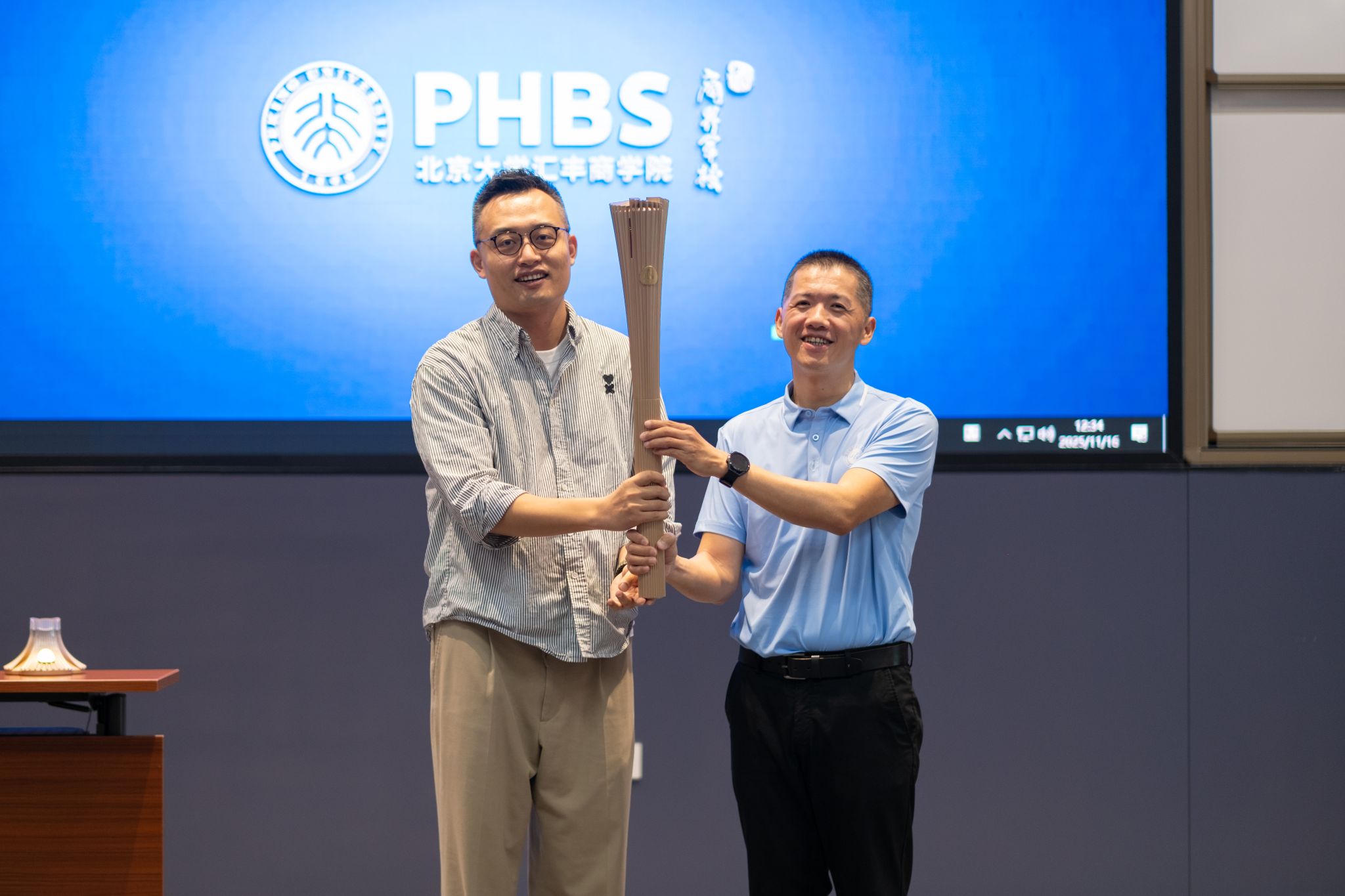 万家乐40周年之际,荣幸成为第十五届全国运动会火炬供应商。在北大汇丰学习的每一天都被“商界军校”精神所感召和洗礼。面对竞争激烈的市场环境,每一位北大汇丰人都在砥砺前行、破风奋进。我代表EMBA2025班赠送火炬,希望“商界军校”之火生生不息,也祝愿每一位同学在未来的生活里心中有火、眼中有光,成为商业翘楚!