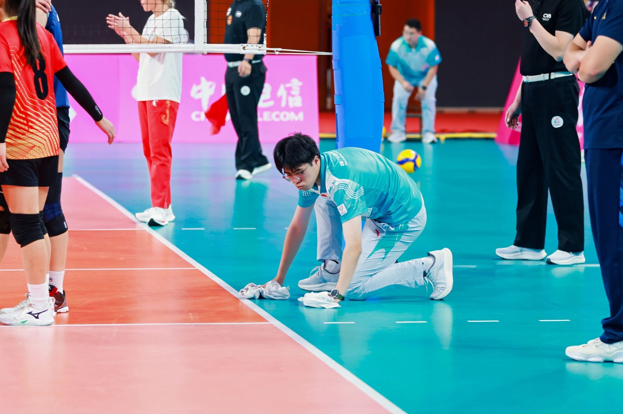 我所在的团队由捡球员与快擦手组成。我担任快擦手,职责之一是在运动员摔倒后的6-8秒内迅速清理地面汗渍,以保障后续比赛安全。每场比赛持续约1.5至2.5小时,期间我们需要频繁往返于场地,快速响应,对意志力与专注度考验较高。令我印象深刻的是,一次比赛中组长为保护运动员飞身扑地,及时化解风险。赛后,组委会与裁判组特别对我们场地团队表达了感谢,这让我们切实感受到自身工作的价值,也更有信心和动力投入到后续任务中。