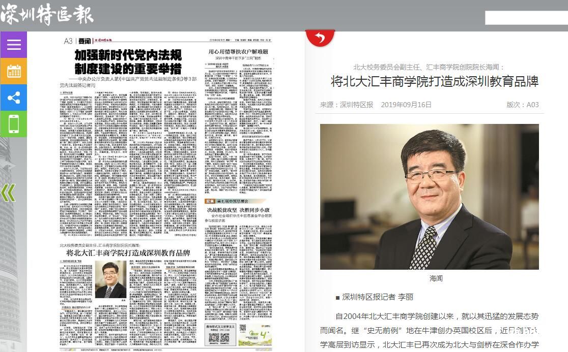 【深圳特区报】海闻: 将北大汇丰商学院打造成深圳教育品牌