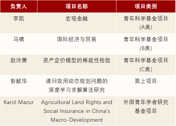 日前,国家自然科学基金委员会正式公布了2025年度集中接收申请项目评审结果。北京大学汇丰商学院共申报10个项目,其中5个项目获批资助,涵盖多个项目类别,包括青年科学基金项目(A类)1项、青年科学基金项目(B类)1项、青年科学基金项目(C类)1项、面上项目1项、外国青年学者研究基金项目1项,获资助率达50%,获资助项目数和获资助率均创新高,展现了学院教师卓越的学术研究水平。