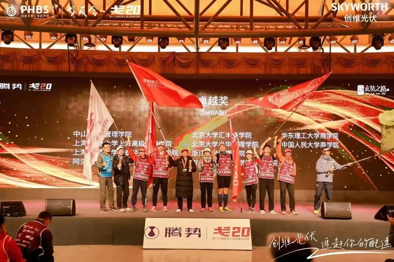 2025年9月29日至10月5日,第二十届玄奘之路戈壁挑战赛(简称“戈20”)在甘肃瓜州举行。由近200名师生校友组成的北京大学汇丰商学院战队在比赛中获得优异成绩:EMBA组A队重返前八,B队金标数并列第二,总奖牌名列第三;MBA组A队位列第五,B队总奖牌数排名第三;两队还获得“沙克尔顿奖”“赛事卓越奖”“励行公益院校奖”“卓越奖”“戈壁同心奖”“双星闪耀奖”等多个奖项。